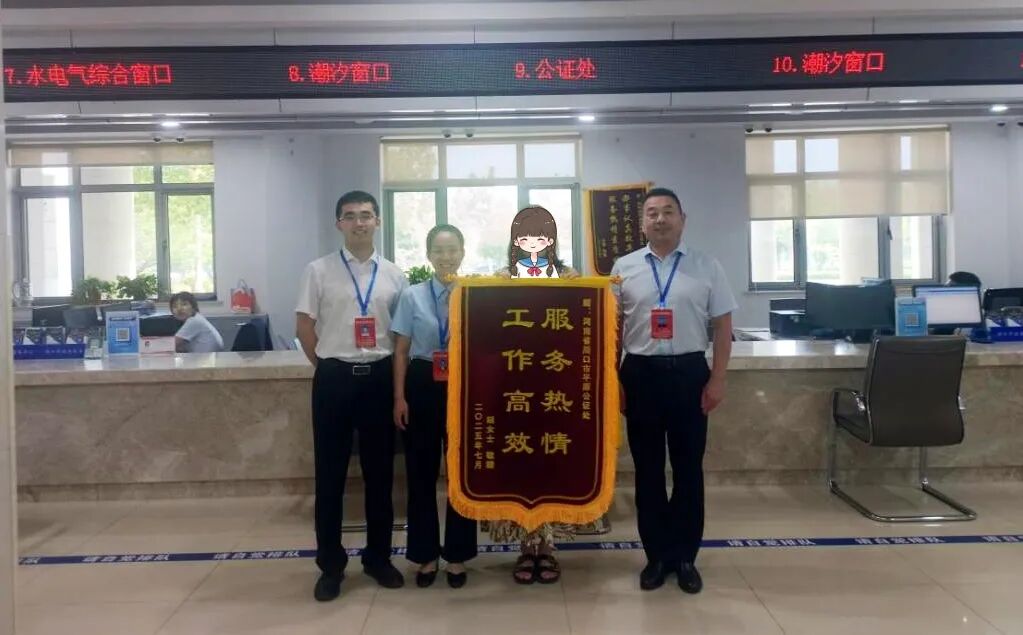 7月11日,胡女士将一面印有“服务热情 工作高效”字样的锦旗送到河南省周口市平原公证处驻周口市行政服务中心办证点。