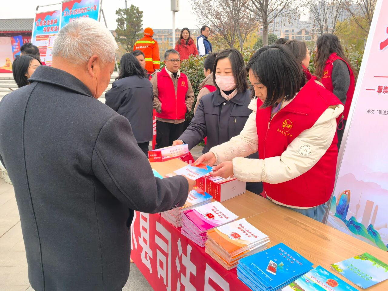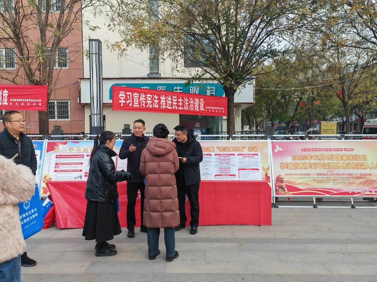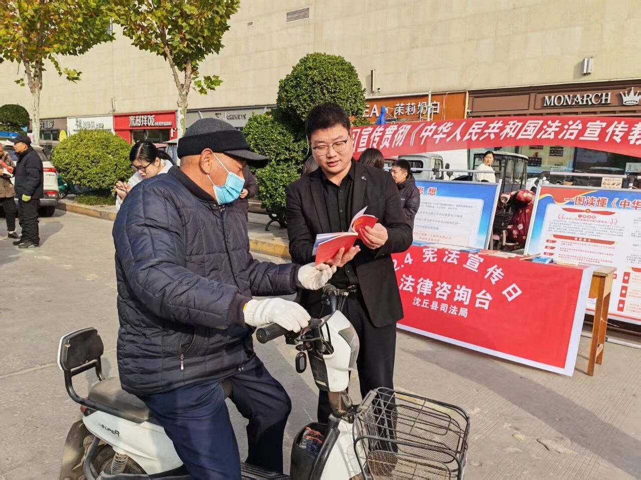 宪法宣传周期间,沈丘县司法局组织普法志愿者走进街头巷尾,向来往群众普及宪法知识,提供法律咨询服务。