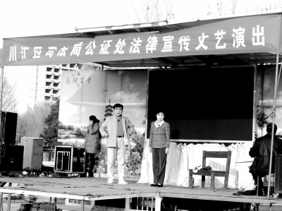 12月9日下午,周口市川汇区政府法治文化广场坐满了从四周赶来观赏文艺演出的群众。周口市颍河公证处正在这里举行2016年度的第四次法制宣传文艺汇演。